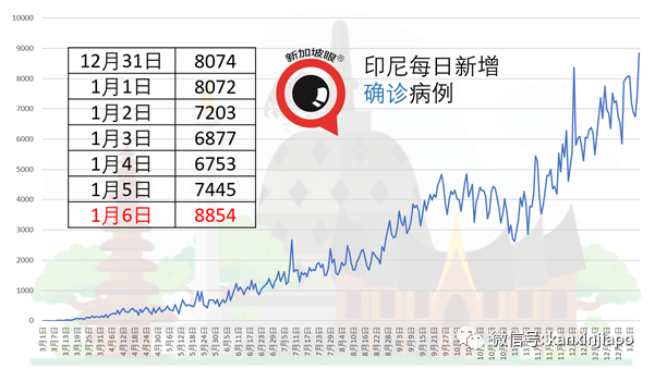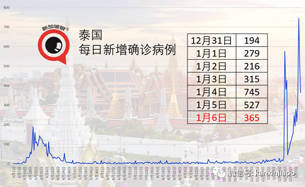 1月6日,印尼新增8854起确诊病例,累计788402起,破78万起。 这是印尼疫情发生以来的单日新高。 昨天通报187起新增死亡病例,累计23296起。 从图表上看,印尼疫情仍持续中,而且比过去迅猛。 印尼新冠确诊病例和死亡病例人数皆为东南亚最高。 泰国大增365起确诊新增死亡病例与外劳有关