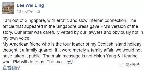 ——在昨天的公开信当中,李玮玲和李显扬指出,尽管李显龙曾答应不参与政府所有有关故居的决策,2015年也在国会表明政府无需在李玮玲搬离前对故居去留做决定,而是交由届时政府处理,但他们仍在去年获知政府设立部长级委员会讨论故居的处理选项和影响。——
