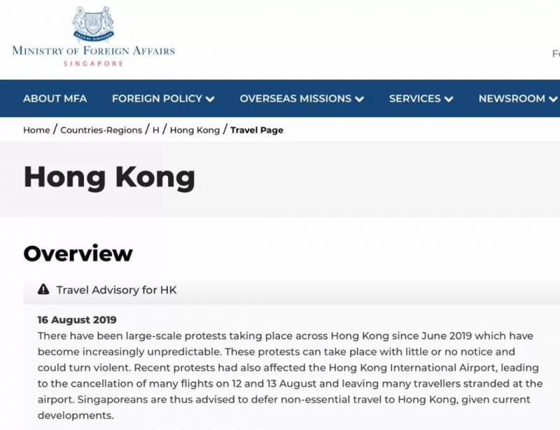 之前,新加坡外交部就已发出 “若非必要,请尽量推迟赴港”的官方预警: