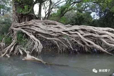 其次,河床一旦被侵蚀掉了,就会影响到河海交界处绵延生长的红树林。