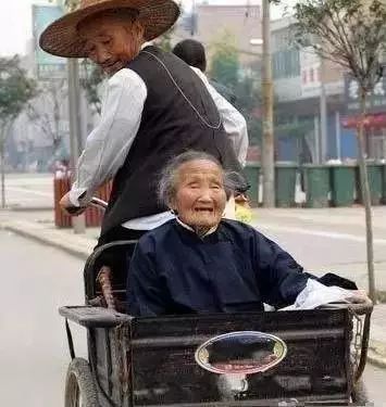 70岁儿子拉91岁母亲逛街。人生的幸福莫过如此吧!幸福是按自己的心愿生活一辈子。