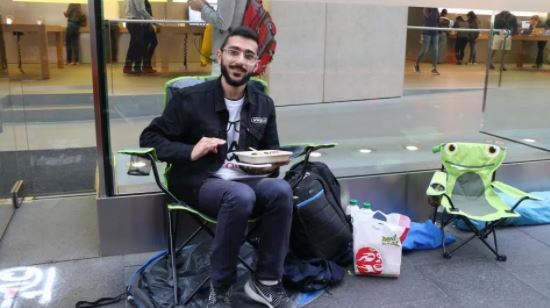 上图,Mazen Kourouche提前10天在店门口露营排队,当时还接受了很多报社记者的采访。他自称是Youtube上的科技产品测评Vloger。