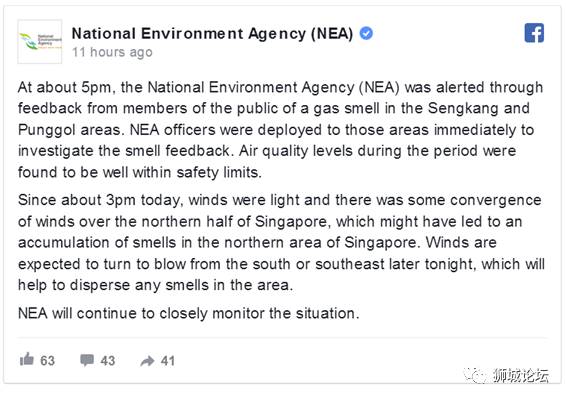 而新加坡国家环保局也发FB表示,空气质量指数在安全范围内,所以昨天如果有闻到气味的孩纸们,也不用过分担心。