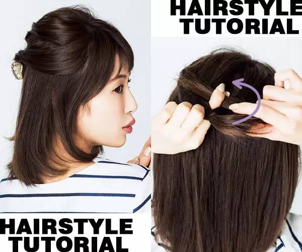 step 4:马尾辫再翻转然后带上好看的发夹就完成与众不同的半扎发型。