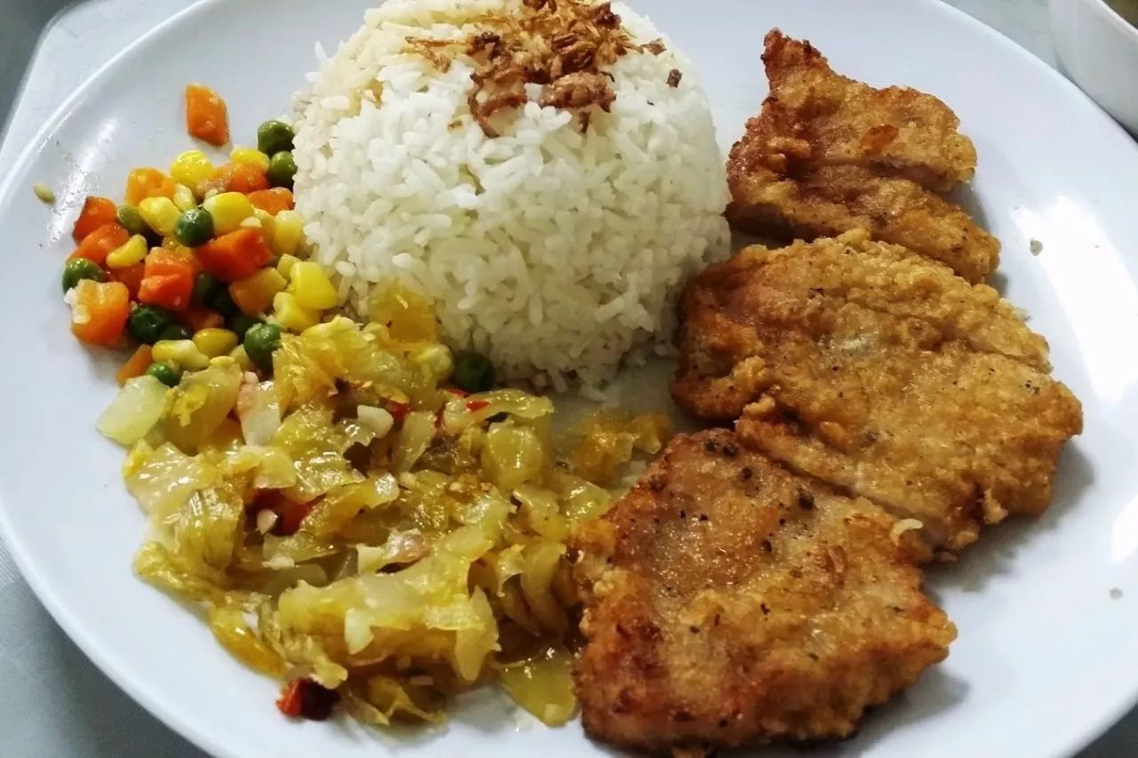 这家店对很多人来说是隐藏好店,很多人会特地跑来这里吃猪排或鸡排饭(S$4.80)。这里的猪排看似很薄,但是不会过柴,粉也裹得非常的薄。再搭配上咸菜还还有饭,很开胃。