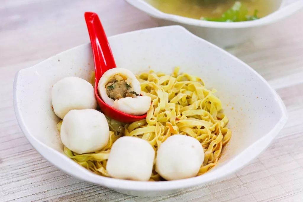 晚上想吃的比较清淡一点,可以来一碗福州鱼丸面(S$3.50)。每颗白色鱼丸里都裹着调过味的猪肉,这是福州鱼丸的特色,再搭配弹牙的面条,简单而幸福。