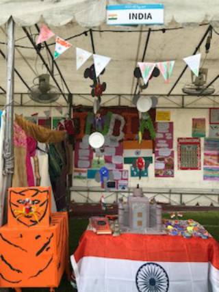 在10月27日星期五这一天,孩子的学校举办了联合国日的庆祝活动。因为全校有55个不同国籍的孩子,学校便策划了代表各个国家的55个摊位,每一个班级负责一个国家。