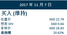 根据戈登增长模型,维持“买入”评级,目标价上调为26.83新元 (之前的目标价为25.70新元)