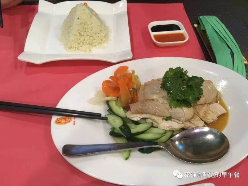 当当当,著名的天天海南鸡饭长这样,新加坡的海南鸡饭改变了我对鸡肉柴而无味的偏见,鸡肉滑嫩,米饭入味,油润而不腻。新加坡的食阁很喜欢提供不同种类的辣酱和佐料,食客可以按照自己的喜好取一些放在小碟子里佐餐用。