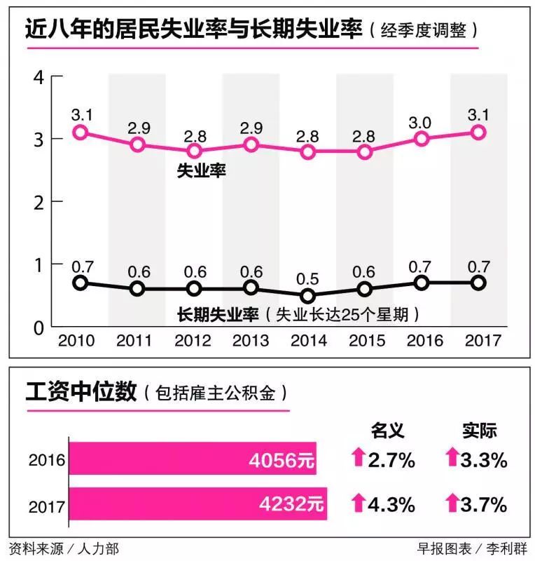 整体而言,今年的居民失业率(经季度调整)为3.1%,比去年同期微升0.1个百分点。但人力部指出,长期失业率与去年持平,说明失业者多数可在短期内投入另一份工作。