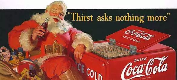 1931年,可口可乐公司聘请了著名画家Sundblom画出了圣诞老人的图,在画中,留着一把雪白大胡子的圣诞老人穿着象征可口可乐公司logo的红衣服,在偷喝可乐。