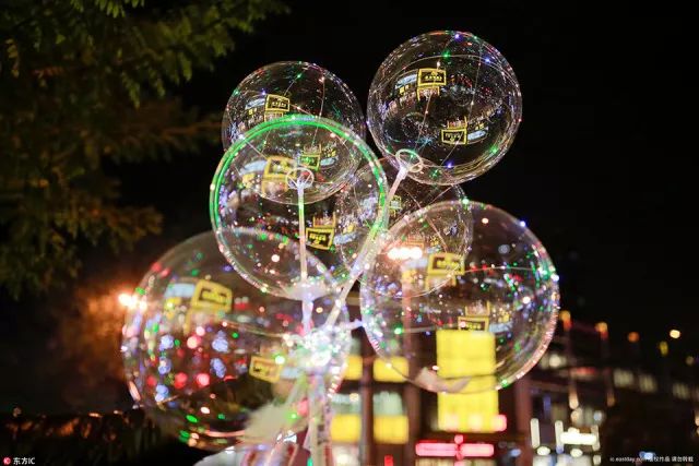 路上全是bling bling的灯光气球