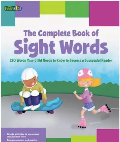 初级儿童读物中出现频率最高的单词,约莫220个,比如“in,on, at ,under, for"这些sight word(高频词)用phonics的方法来读就很费解,但不知道的话又无法自主阅读。比较推荐这本《The Complete Book of Sight Words》。到手真的是很厚的一本,220个词,根绝理解和使用难度被分为4个级别,每个级别有55个词,每 5个词是一个小阶段,完成后有阶段性复习;每个词有两页的练习,图文结合,对于比较枯燥的sight word而言,还算生动。我每天按5个词的进度给Alice推进,目测220个词可以在一个半月内消化。由于这些词在她的睡前读物里重复出现,有些时候,说是教五个词,只讲了两个,剩余的因为看太多次,都会了。所以sight word这阶段没别的,就是多读。对于爱看书的小孩来说,这也不是个事。