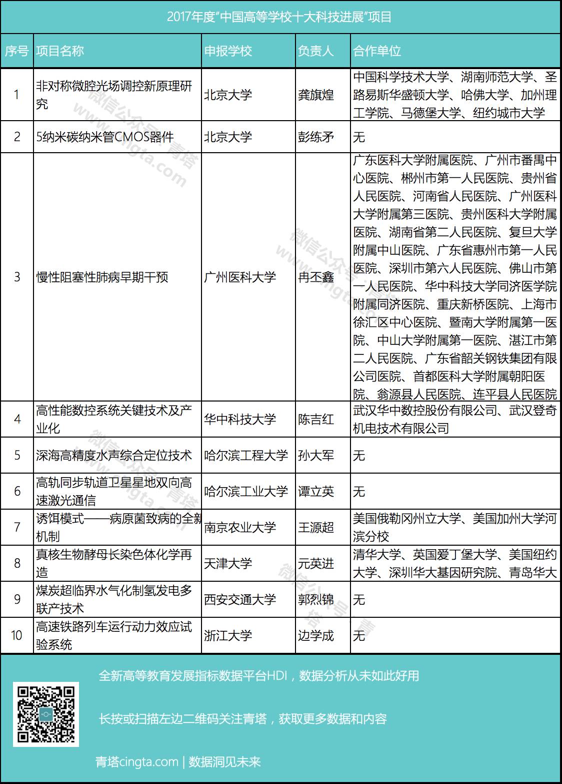 刚刚,教育部科学技术委员会公布了2017年度“中国高等学校十大科技进展”入选项目名单!