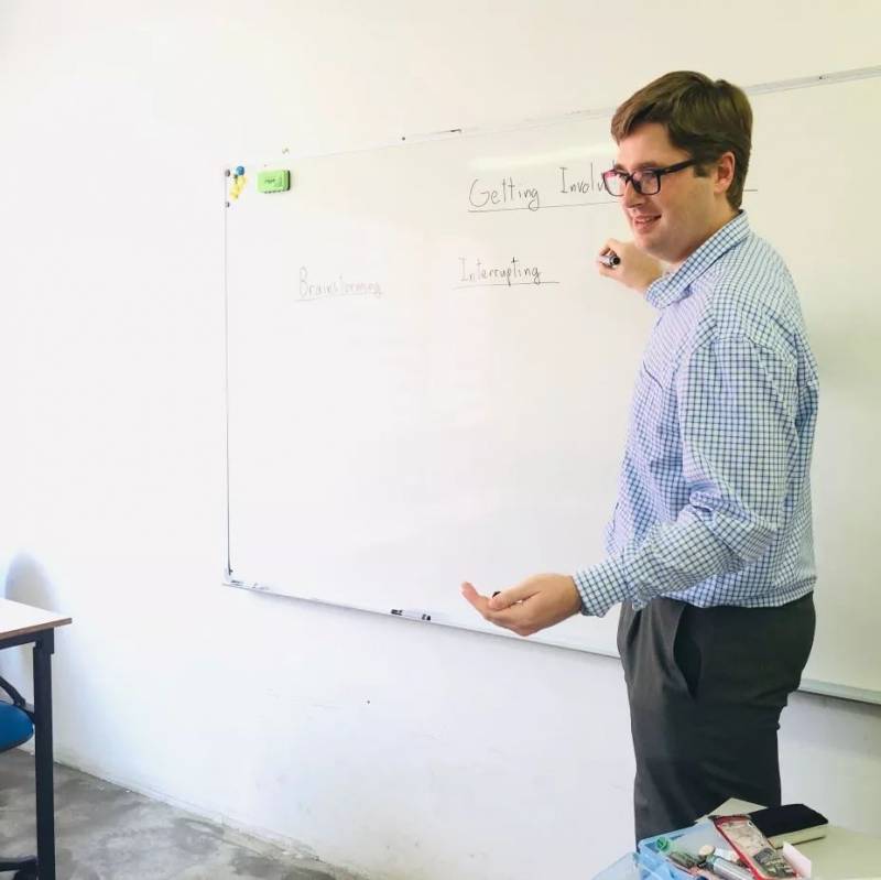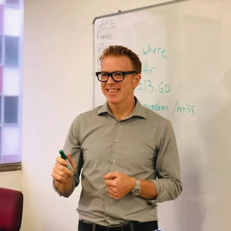 Wayde 老师来自澳洲, 他从2009 年开始教英文,他拥有剑桥的教师资格,是CA老师的负责人。他非常热爱英语教学,他的教学格言是:“students learn best when they are happy and having fun” ,当学生们感到高兴快乐的时候他们才能学的的最好。他说到也做到了。这就是为什么他的学生都非常的喜欢上他的课程了。