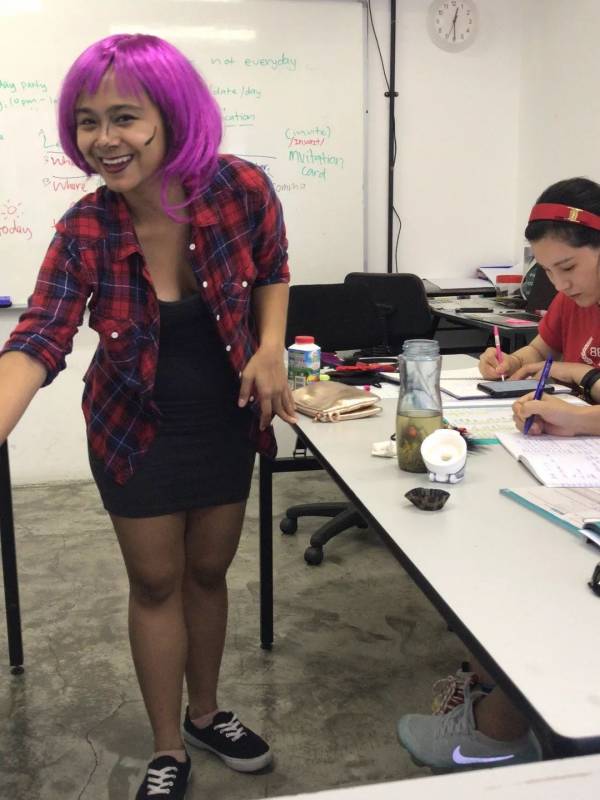 CA的课堂活泼有趣,实践上老师带着学生们去餐厅,教大家如何点餐,熟悉各种生活场景中的英文。图一为生生妈在老师的指点之下成功地点了一份餐。图二是万圣节的时候,老师穿着万圣节服装来授课,不仅仅是教授英文,也是将西方文化传播给学生,从而更好的学习英文。