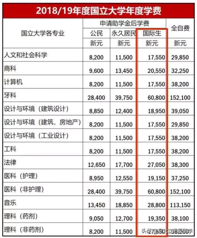以国立大学为例,国际学生的学费一年在两万新币上下,特殊领域专业像法律和医学会高昂一些。