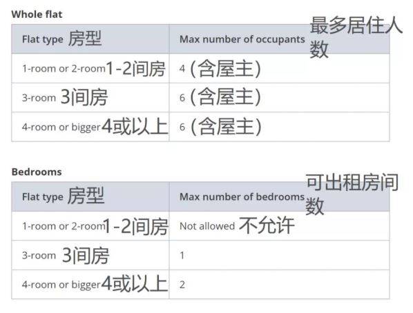 下面是MOM网站最新的关于HDB不同房型最多居住人数的规定: