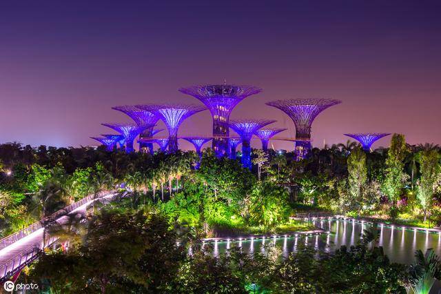 滨海湾花园可以被称为是新加坡的超级花园,造价高达10亿元,18棵绚丽的超级树,将科技与自然融合了起来,这也是一种人与自然的体现。