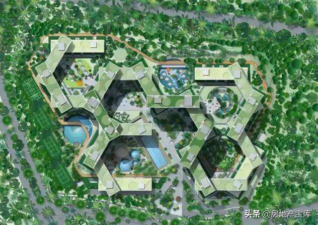 设计摒弃一座座一柱擎天的摩天楼格式,把31栋70米长、6层高的小楼,循着六角形的格式叠排,让住户景观更多元化,能望向四周绿荫与景色,同时也让每座都无法望入邻家,更具隐私。层叠的破格设计也为楼隔距离增至56.5米,大大增加了呼吸空间和隐私感。(景观邦游学考察项目,点击了解)
