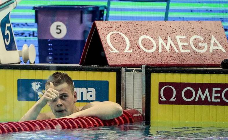 孙杨的主要对手、立陶宛选手拉普赛斯获得本站男子400米自由式冠军,