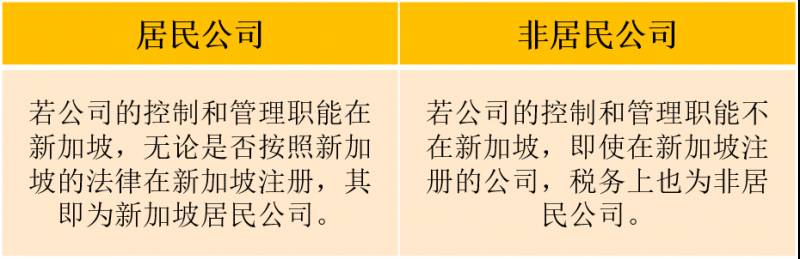 无论是本地企业还是外国企业,都必须对在新加坡境内取得的收入以及在新加坡收到的海外收入依法纳税。新加坡根据公司的控制和管理职能是否在新加坡,对纳税人分为居民公司和非居民公司两类。