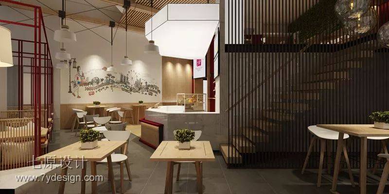 整个餐厅设计比较简单,大多采用木皮,配上灰色的地板,加以局部绿植的装饰,舍弃了不必要的装饰元素,打造出了现代简约的氛围,进而赋予整个空间个性而又宁静的环境。甜品店整体协调搭配、流动的线条以及质感的材料让消费者在繁忙的生活之余,从精神上得到一定的放松和宁静。