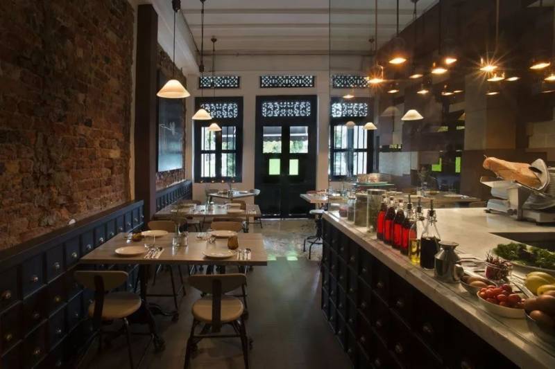 为了体现意大利的丰富多彩,菜单和餐厅环境都采用了具有地方特色的装饰,还特别提供用正宗的木材烤炉烘烤的那不勒斯披萨。剥落的红砖内墙,古老的门窗装饰,在一个现代化的城市空间里,我们仿佛被带回了过去的时光。