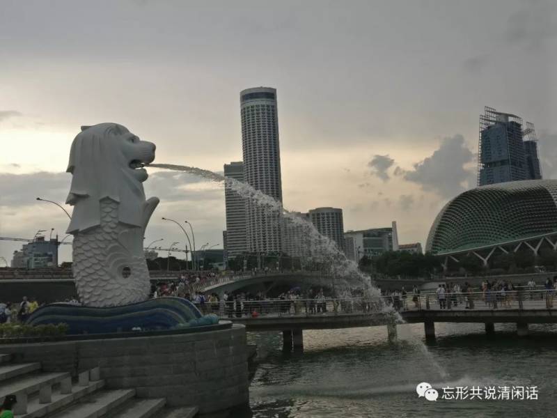 接着去了新加坡市中心的鱼尾狮公园,去看那新加坡的标志——鱼尾狮塑像,这里的鱼尾狮只有8.6米高,和37米高的圣陶沙鱼尾狮塔相比矮了很多,但这里的名气要大很多,所有表明新加坡的地方都用这尊鱼尾狮像。鱼尾狮像的前前后后、远远近近、高高低低挤满了拍照的人,有的用手举著,有的张嘴接着,摆出各种姿势,为了留下这美好的瞬间。