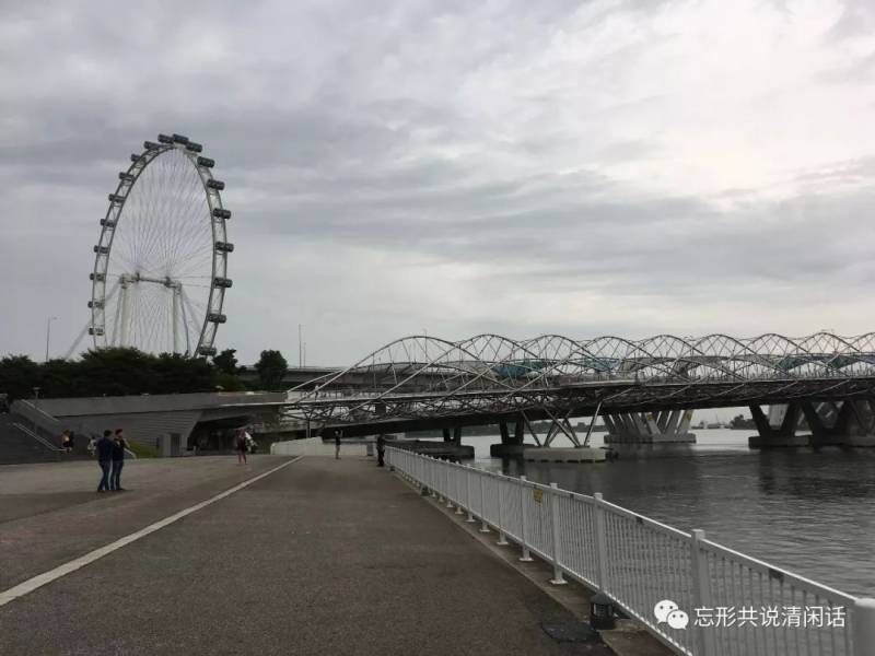 现在正是新加坡的旱季,这时却下起了雨,雨不大,淅淅沥沥地洒在头上身上,很是惬意。往前走便到了42层楼高的新加坡飞行者摩天轮,摩天轮的轮体直径达150米,安置在3层的休闲购物中心楼上,总高度达到165米,为世界第一。