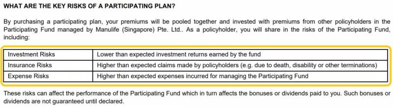 紧接着,保险公司会明确告知你购买分红型保险时所面临的一些风险。换句话说,有哪些因素会导致你得到的实际分红低于预期。