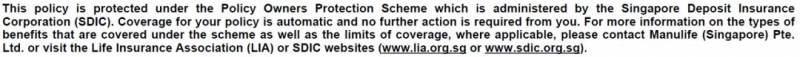 “本保单在新加坡存款保险公司的《保单持有者保障计划》下受到保护。在该计划下,您的保单自动受到保障,而您无需采取任何行动。”