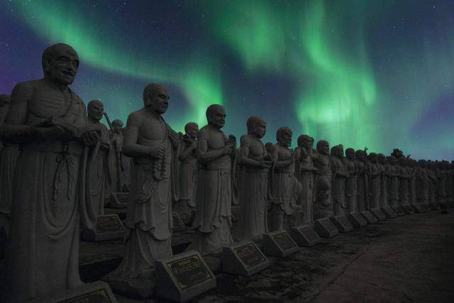 寺庙卧佛,何必大费周章去泰国,我佛卧榻更妖娆洒脱,更有五百罗汉为之护法,场面可谓叹为观止。晚上去500罗汉,运气好的话还能看到极光