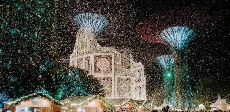 在圣诞期间,整个海滨湾花园被耀眼的灯光装饰起来,加上多种元素的融合,使得整个海滨湾花园魅力四射~