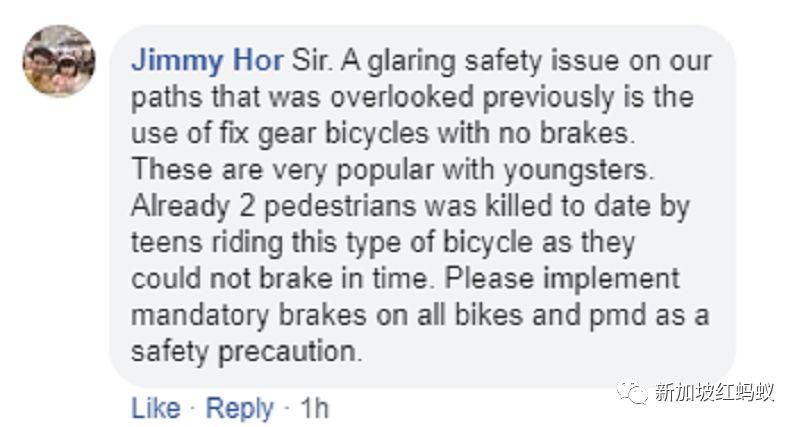 这名网民呼吁当局也应强制规定所有脚踏车和电板车都配有刹车装置。也有一些网民认为,脚踏车骑士也应通过理论测试。