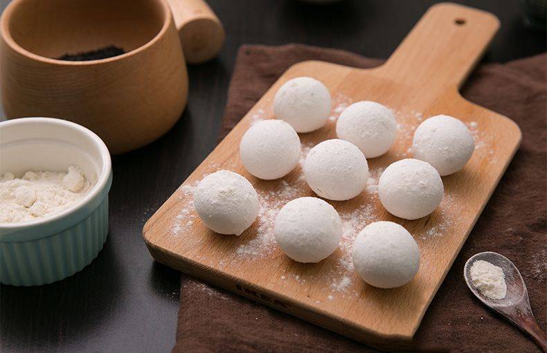 所有汤圆的糯米皮不是机器做出来的标准圆形,而是人工手搓出来的,也比较容易煮熟。