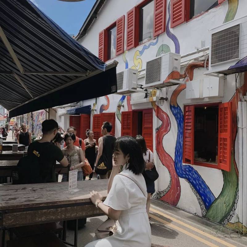 哈芝巷本身是有着很多小店的窄巷子,服装店,精品店,酒吧,各国餐厅都有,人挺多的,也很热闹。整条巷子色彩丰富,建议穿纯色衣服拍照(我穿的白裙子~)