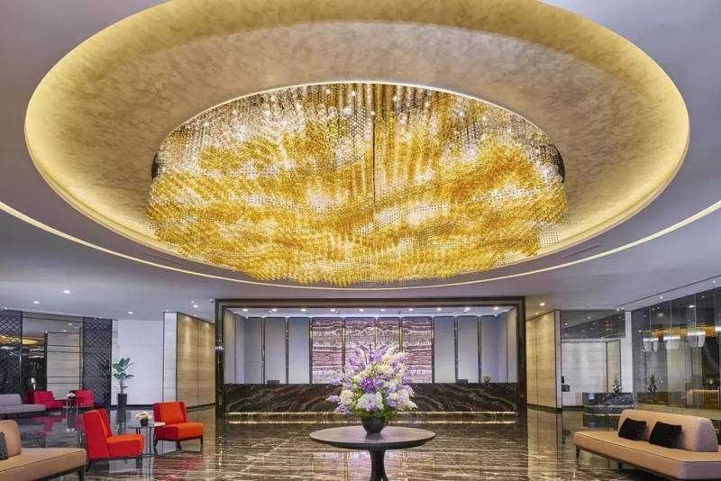 金碧辉煌的酒店大堂,华丽的灯饰衬托出典雅大气的感觉。