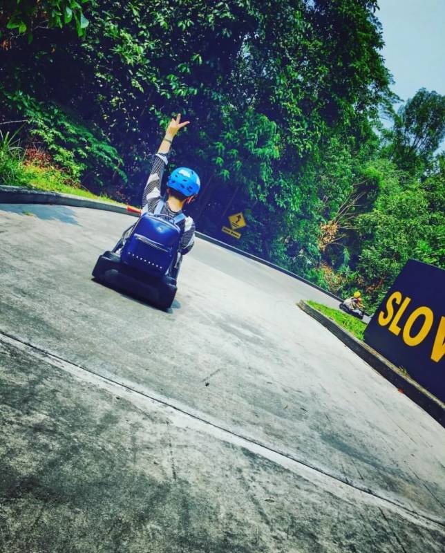 滑车的话,是一个可以手动控制的小车子,下坡的时候速度很快,非常爽。有普通赛道和那种刺激一点的龙赛道,贴地飞行的感觉棒呆了!