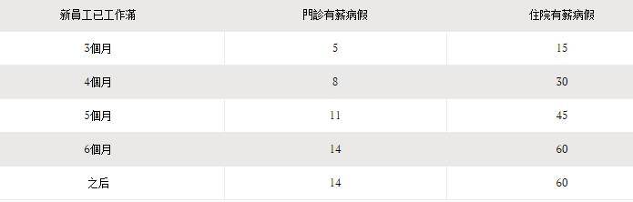 如果你是新雇员,可根据以下服务及工作时间获得病假: