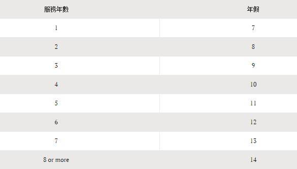 若你已在公司工作满至少3个月,有权获得的有薪年假不能少过以下规定: