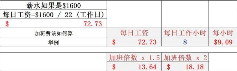 超时工作的计算及支付 – 如果你的薪酬是以月薪计算,你的时薪计算法如下: