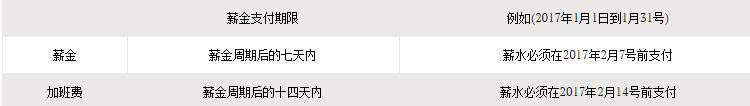 雇主必须根据以下时间表,每月至少支付一次工资及加班费给你: