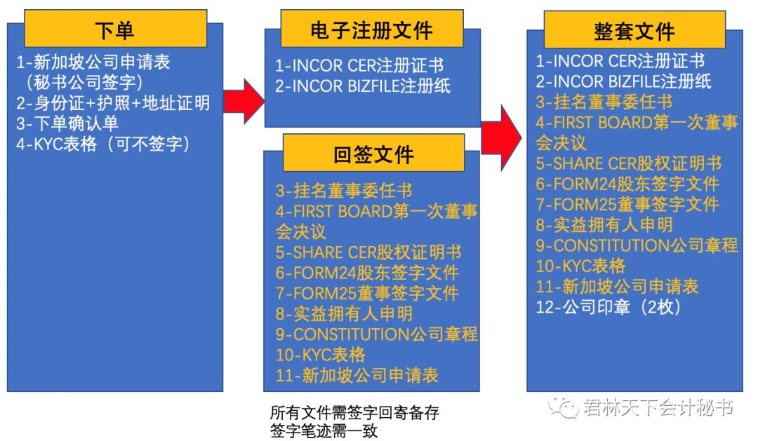一、材料预备流程公司名称:新加坡公司的名称为英文,而且不接受中文名注册,以 PTE.LTD. (Private Limited)结束。(一般是建议提前准备2-3个备用,提供想要注册的公司名称后,和新加坡会计和商业管制局(ACRA)进行名字查询,以确认该公司名称的可用性)