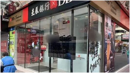 7 香港侮辱新加坡 曾与新加坡同属亚洲四小龙的香港, 在2019年发生了许多变故。 暴乱分子把原本繁华、优秀的香港变得乌烟瘴气, 这些风波甚至连累到新加坡总理李显龙。 新加坡星展银行(DBS) 在香港的一家分行惨被破坏, 分行的玻璃橱窗惨遭恶意涂鸦。