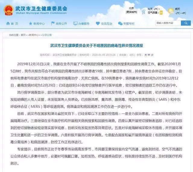 “武汉出现不明原因的病毒性肺炎”