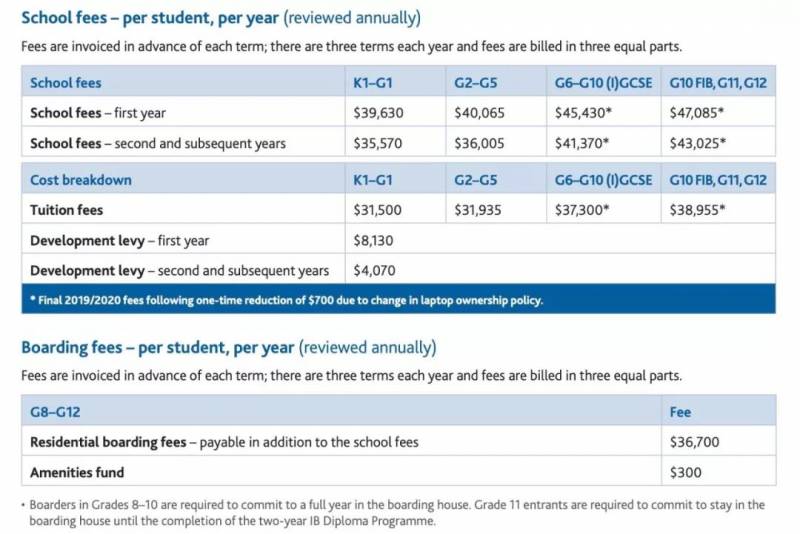 UWCSEA的学费收取在初次入学的时候会贵一点,如果是第二年再次入学就会有相应的优惠,价格在39630新币-47085新币之间不等(不包括学杂费用,如校服、住宿等)