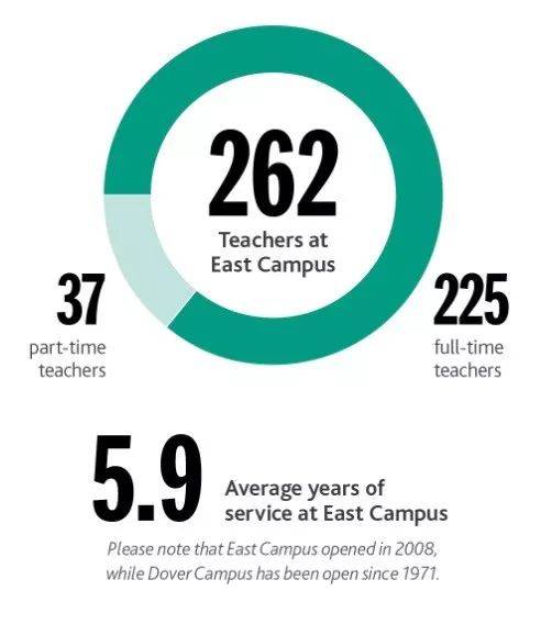 东部校区2008年建成,已有12年历史,位于东部淡滨尼区,靠近樟宜机场,有2500多位在读学生,来自78种不同国家,师生比例1:10.4,拥有老师262位,教师平均教龄6年左右。