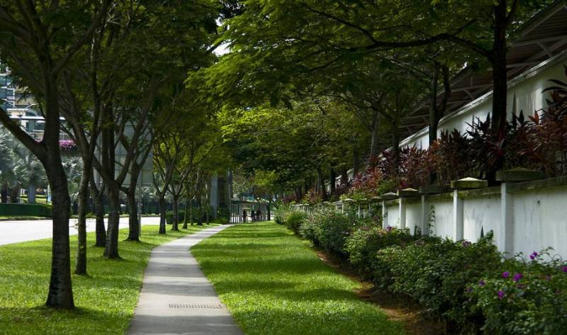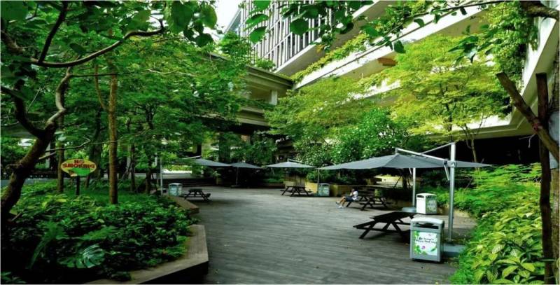 位于丹戎巴葛商业区为混凝土和钢材的杂乱带来新鲜绿色的空气