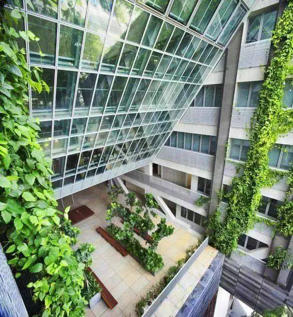 建筑物外部55%都覆蓋着茂密的绿叶这里的上班族每天都能与大自然亲密接触